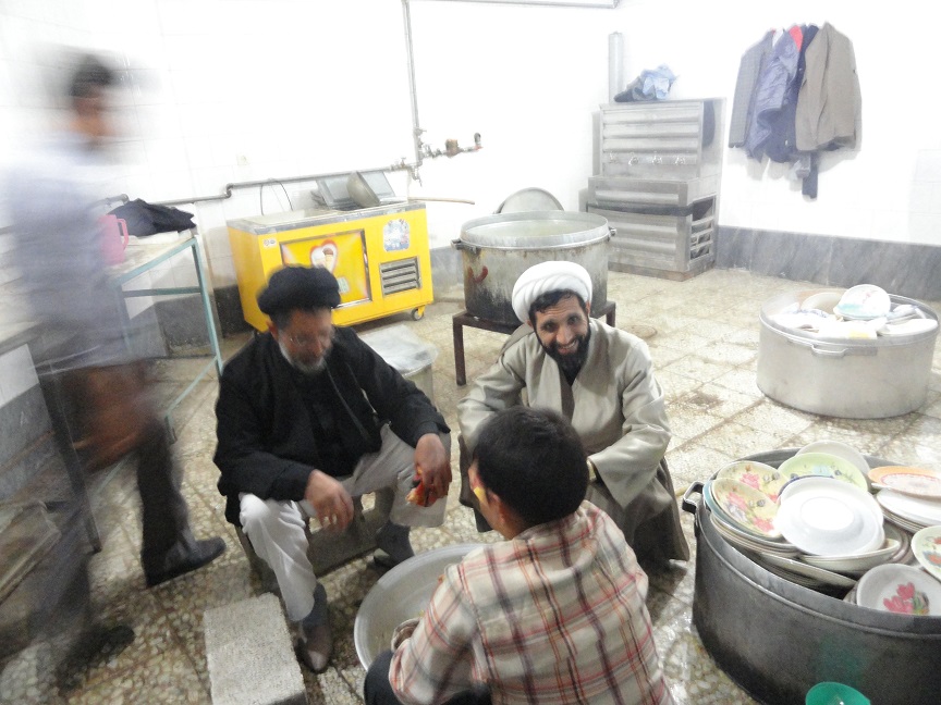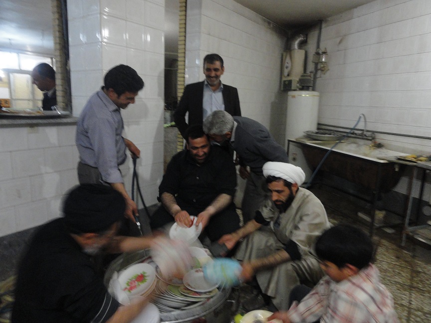 روحانیونی که آستین ها را بالا زده اند و ظرف می شویند.